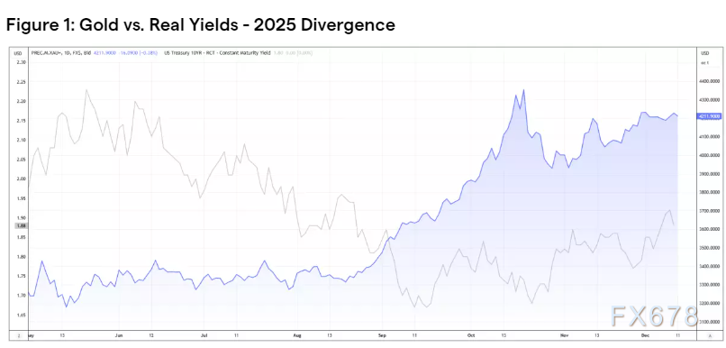 2025年的市场表现已清晰印证黄金对宏观变量的敏感性:6-12月美国国债收益率短端与长端的期现溢价不断拉大同时实际收益率不断下探,黄金价格同步飙升至历史新高,这种联动关系仍是2026年驱动黄金走势的核心主线之一,需作为交易决策的关键参考。