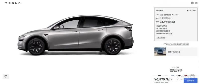 特斯拉Model Y六座版来了!2025年8月19日,特斯拉在中国官网推出六座SUV Model Y L,售价33.9万元起,同时推出的购车福利包括“首付99900元起北京股票配资平台,享3年0息”“首付45900元起,享5年超低息”,叠加8000 元车漆选装礼金和三种特享充电权益。Model Y L采用六座布局,搭载双电机全轮驱动,CLTC续航里程可达751km。